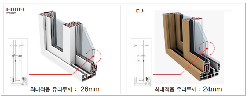 ※타사 16mm 간봉이 없음 = 26mm 복층유리 없음